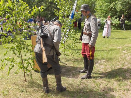 vaeltajista oli pukeutunut evakkoajan asuun. Evakkovuosien